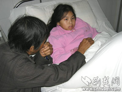 在縣人民醫(yī)院內(nèi)三科9病房里,潔白的病床上躺著一個面色蒼白、嘴唇發(fā)烏的小姑娘,她就是楊青。在楊青艱難地望過來的時候,記者的心不禁打了個顫:大眼睛沒有一絲神采!記者反復醞釀的問候語哽在喉中。楊青的父母、奶奶、姑媽,卻忍不住悲傷,淚如雨下!皸钋啵阃床煌?”“痛……”楊青張了張嘴,聲音弱得幾乎聽不見!澳睦锿,告訴阿姨好嗎?”“全身都痛。”楊青顫抖著吐出這4個字后,不再開口說話。