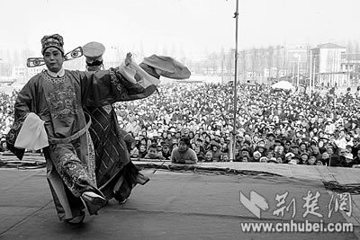 22日下午,潛江市澤口開發(fā)區(qū)彭魯村村民正在欣賞潛江花鼓戲。春節(jié)以來(lái),該市地方歌舞、龍燈、舞獅、采蓮船等群眾喜聞樂(lè)見的文藝活動(dòng)遍布城鄉(xiāng),群眾的節(jié)日文化生活異彩紛呈。荊楚網(wǎng)湖北日?qǐng)?bào)記者鄭元昌 通訊員吳燕軍攝