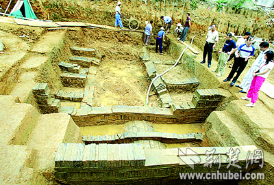 負(fù)責(zé)施工的武漢市文物考古研究所許主任說,經(jīng)鑒定,瓷片屬于宋代,可能是墓主的后人留下的。挖了半個月,至今仍未掘出古墓的整個墓緣?脊艑<曳Q,墓室規(guī)模龐大,結(jié)構(gòu)巧妙,墓主應(yīng)是南北朝時期很有身份地位的貴族。