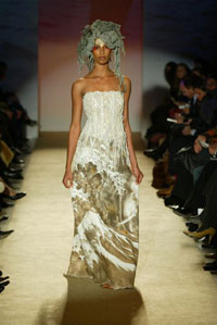 時尚的實(shí)驗(yàn)---如它所被定義的那樣---以擁有無數(shù)的褒獎和特殊的證明為榮耀,并在世界范圍內(nèi)擁有無數(shù)的追隨者。她設(shè)計的多樣性使將她帶到比利時首席設(shè)計師Micha Van Hoecke的服裝秀去設(shè)計高級女裝。她明了且有棱角的風(fēng)格在她對顏色、材料和傳統(tǒng)的運(yùn)用上無不發(fā)揮的淋漓盡致。Marella Ferrera的風(fēng)格被描繪成既冷靜又線條明朗,通過對于一些原始材料的使用,像熔巖,玻璃,海芋,百合,無色水晶,刺繡雕刻,她常常創(chuàng)造出一些微型的藝術(shù)品.西西里亞、拉瓦、十勝石、陶瓦、無色水晶、銅、紙草以及紡織紙品,軟木和棕櫚樹根、皮革、緞帶、所有的蔬菜和動物的毛皮等等都會成為她穿著的重要的靈感來源。"...服裝必須是完美協(xié)調(diào)穿著者的東西,而不能讓人成為服裝的傀儡..."