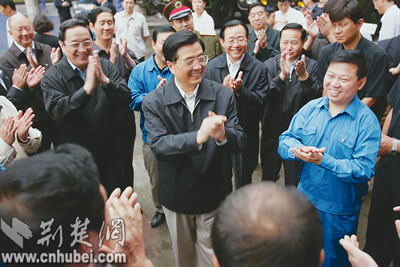 胡錦濤總書(shū)記在襄樊慰問(wèn)企業(yè)職工。