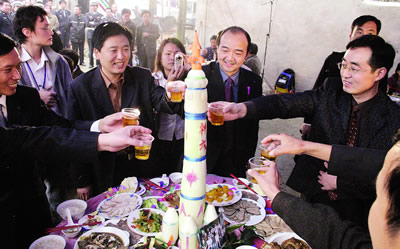 一道道菜來一杯杯酒,幾多祝福幾多歡笑!人們用熱烈而又樸實的方式,共賀聶海勝41歲生日,并期盼他凱旋!