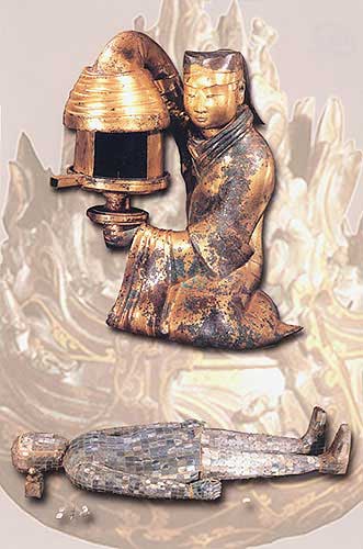 鎏金“長信宮”銅燈:照明用具(上,高48厘米)