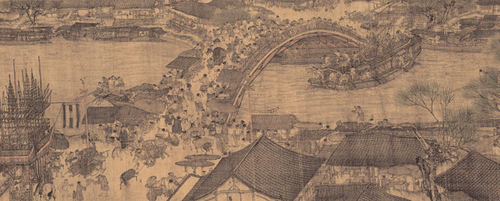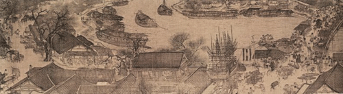 京城汴梁及汴河兩岸的繁華和熱鬧的景象和優(yōu)美的自然風光。作品以長卷形式,采用散點透視的構圖法,將繁雜的景物納入統(tǒng)一而富于變化的畫卷中,畫中人物500多人,衣著不同,神情各異,栩栩如生,其間還穿插各種活動,注重情節(jié),構圖疏密有致,富有節(jié)奏感和韻律的變化,筆墨章法都很巧妙,頗見功底。