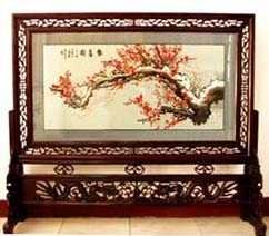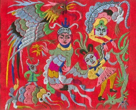 苗繡 刺繡,是苗族婦女盛裝不可或缺的飾物,主要有領花、肩花、襟花、背塊花、袖口花、裙鑲花、帽頂花、帽頂花等品種。苗族刺繡,整體上多為幾何構圖,古樸多姿。其圖案因繡片條、塊的不同,分為幾何二方連續(xù)式和四方連續(xù)式構圖。其圖案取材于生活中常見的草木、鳥獸、蟲魚、器具等。圖案的整體布局一般以菱形為立體紋樣,常見的是大菱形中套小菱形,小菱形又分別由不同色彩的方、圓、三角點狀組成。條狀繡片,多用點、線或線面組合,一整二剖構圖。繡片是按布的經緯戳針,故曲線多折角。大塊繡片,如背塊花等,多用菱形四方連續(xù)構圖,并在其中布以對稱的變形幾何點及其他折線。所有繡片,粗看五彩斑斕,細觀則不同色線組圖分明,交錯重疊,既復雜多變又結構嚴謹、條理清晰。繡法很多,有平繡、凸繡、辮繡、堆花、縐繡、纏繡、挑繡、抽花等。平繡是最曾遍的繡法。這種繡法是重于圖案布局的美觀勻稱,色調鮮明,有明顯的物象感。凸繡流行于凱里、臺江部分地區(qū),它是在底布上多鋪幾層紙花,使所繡圖案凸出,有立體感。辮繡只在雷公山巴拉河一帶流行,其方法是將若干根色線編成辮子,按設計圖案平鋪于底布上,用絲線釘牢即成。圖案色調大致是青年女子鮮艷,中年以上婦女稍渾暗。如凱里、黃平、施秉等地,姑娘及較年輕婦女的盛裝刺繡以青布作底,繡大紅,間有少量白黃綠之色,亮麗醒目;中年以上婦女盛裝刺繡,亦以青布作底,以紫藍為基調,間以少許桔紅、綠、白等色,顯得深沉穩(wěn)重。 京繡 京繡又稱宮繡,明清時期開始大為興盛,多用于宮廷裝飾、服飾,用料講究、技術精湛、格調風雅,民間高檔的宮繡大都與皇宮有著千絲萬縷的聯(lián)系。京繡屬手工刺繡,所以在今天機繡發(fā)達的時候,為區(qū)別于機繡又名“手繡”。京繡在解放后,逐漸形成了自己鮮明的藝術特點與風格,其選料精當貴重,針工巧妙得體,色彩絢麗豪華,格調高雅。其中最好為針工中的“平金打籽”繡。這種繡,是以真金捻線盤成圖案,或結籽于其上,十分精致,華貴。 發(fā)繡 發(fā)繡,又稱“墨繡”。是以人的頭發(fā)為材料,在綢緞、絲絹或滌綸布上精心繡制的特種藝術品。具有淡雅、不褪色、耐腐蝕、利于收藏等特點。彩色發(fā)繡是相對于單色發(fā)繡而言,它是指以不同人種的天然色澤發(fā)絲為材料,遵循色彩規(guī)律,在繃平整的布帛上施針度線,塑造形象的藝術。作品的質感效果特別好, 畫面有微妙的色彩變化,層次較單色發(fā)繡豐富,技巧靈活多變,形象更加栩栩如生。 材料的特質屬性賦予發(fā)繡藝術獨特的魅力,具有豐富的人文內涵,如用自己的頭發(fā)繡一幅寫真“二我”,具有生命的直接紀念意義。作品集繪畫與刺繡為一體,具有一定的美學價值和經濟價值,又能經久保存,千年不變,可謂收藏極品。 甌繡 由于溫州地處甌江之濱,故得名“甌繡”。400多年以前,浙江溫州地區(qū)已運用刺繡美化服飾, 繡品技藝也達到相當水平。據(jù)說甌繡最早產生于民間婦女之手,那時的刺繡品種有衣服、小兒帽 圈、圍涎、錦肚、婦女鞋面、枕頭、荷包等。題材只有花鳥魚蟲之類。甌繡真正成為供欣賞的藝 術品只有60多年歷史。1922年前后,溫州刺繡藝人林森友在上海一家刺繡莊發(fā)現(xiàn)了湘繡畫片, 回來后開辦了“美艷”刺繡作坊,仿照湘繡畫片的技法,改進甌繡生產。從此,溫州出現(xiàn)了甌繡畫片。