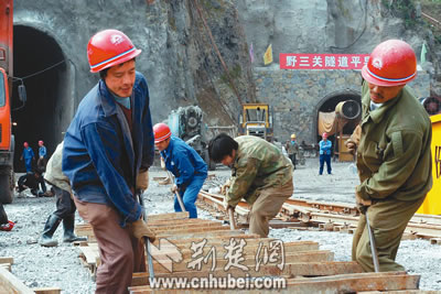 這條鐵路橋梁和隧道多,全路的橋隧累計(jì)長(zhǎng)度占全線(xiàn)總長(zhǎng)的73.69%,其中隧道多達(dá)121座,占全線(xiàn)長(zhǎng)度的59.54%。隧道多,隧道長(zhǎng),隧道之中還要建橋梁,這在我國(guó)的鐵路建設(shè)史上也是罕見(jiàn)的。其中還有一些車(chē)站也建在隧道里,隧道施工成為工程建設(shè)最重要的環(huán)節(jié)。