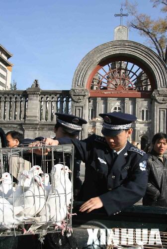 北京王府井教堂前拉網(wǎng)捕野鴿(組圖)