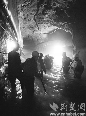 這是一群怎樣的鋼鐵漢子喲!他們兩年中遭遇38次突泥突水,每次大的搶險,都要持續(xù)數(shù)十小時,每次都有10多人暈倒;從開工至今,先后有20多名工人實在頂不住,走掉了,但絕大多數(shù)人沒有向困難低頭,選擇了繼續(xù)戰(zhàn)斗;在掘進(jìn)工作面上,除了機(jī)械設(shè)備,他們身邊還有50多套救生衣、救生圈,1萬多條防水編織袋,甚至還有一只皮劃艇……