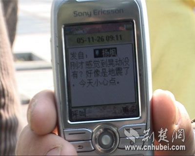 8點(diǎn)50分左右,記者在辦公室看到水杯、窗戶等都有明顯震動。隨后,辦公室熱線電話響個不停。家住武昌、漢口、青山、漢陽等地?cái)?shù)十位網(wǎng)友紛紛來電,均稱有明顯震感。鄂州城區(qū)維新路的王先生、洪湖建行大廈八樓的汪女士也致電本網(wǎng),稱當(dāng)?shù)赜姓鸶小?/P>