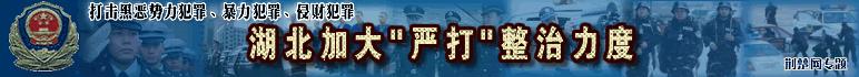 湖北今年嚴打目標(biāo)確定 省公安廳透露,去冬今春,我省社會治安大局穩(wěn)定,刑事發(fā)案率有所下降,今年將加大嚴打整治力度,重點打擊黑惡勢力犯罪、暴力犯罪、侵財犯罪……[詳細]::武漢警方突襲濱江明珠娛樂城 抓獲45名吸毒者 ::全省交警嚴查盜搶車 一假警車上查處9塊假車牌::湖北圈定106個治安整治重點 武漢市5個地段在列 武漢嚴打建筑工地惡勢力 [市政法委 各區(qū)舉報電話][把黑惡勢力趕出工地訪談熱線開通]::武漢市政法委副書記:廣泛發(fā)動群眾鏟除沙霸石霸::漢陽鏟除沙石惡霸團伙 行兇兩年作惡無數(shù)(圖)