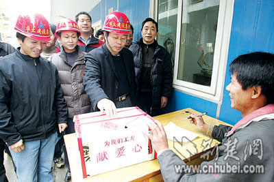 工友們悄悄謀劃開了。昨日上午,在施工現(xiàn)場(chǎng),大家你100、我50地將錢投進(jìn)捐款箱。一個(gè)多小時(shí)內(nèi),共捐款3460元。