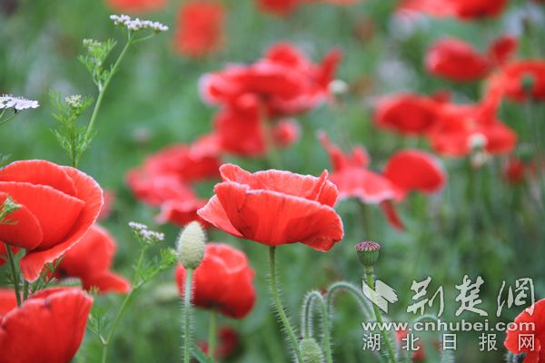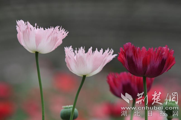在罌粟屬的植物中,還有個常見的觀賞花卉虞美人,因為兩者花期一致,外形相似,常常被公眾混淆。在罌粟籠子的周圍,武漢植物園還種植了上白株罌粟的“姐妹花”虞美人,方便市民對比鑒別。