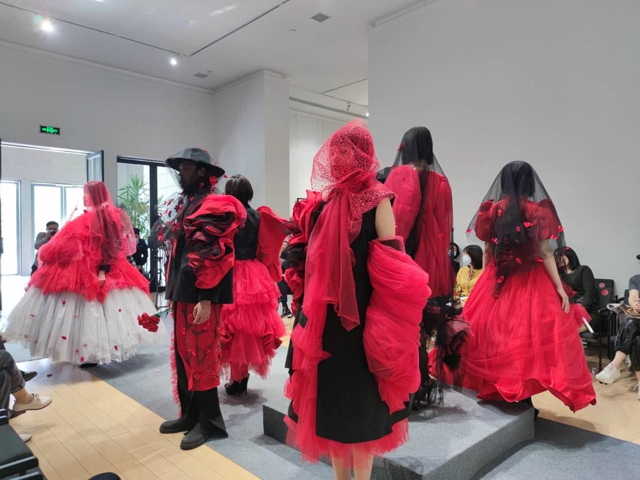 服裝動(dòng)態(tài)秀展演結(jié)束后,江漢大學(xué)2021年應(yīng)屆畢業(yè)生代表給服裝系專業(yè)老師舉行了獻(xiàn)花儀式?;顒?dòng)現(xiàn)場(chǎng)來(lái)自社會(huì)各界、兄弟院校、各大企業(yè)及江漢大學(xué)師生代表300余人參加了開(kāi)幕式展演活動(dòng)。