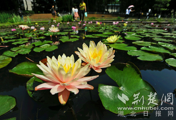 睡蓮展示區(qū),“水中女神”已經(jīng)蘇醒,進(jìn)入超長花期。印度紅睡蓮、埃及藍(lán)睡蓮、墨西哥黃睡蓮、中國延藥睡蓮、泰國招財女神……武漢植物園睡蓮池臥虎藏龍,展示著世界各地的睡蓮名品。仿造睡蓮花瓣建造成的“八色睡蓮池”已經(jīng)上色完畢,紫、藍(lán)、黃、粉、紅,色彩大膽絢爛,如意蘊(yùn)流淌的藝術(shù)家畫作。
