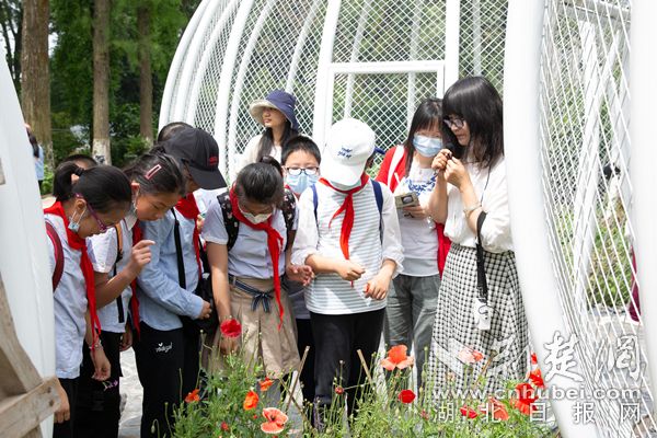 在武漢植物園本草園的西側(cè)的活體罌粟展示區(qū),五個(gè)白色的罌粟果實(shí)狀籠子格外顯眼?;顒?dòng)現(xiàn)場,湖北省禁毒委員會(huì)、武漢植物園和梅苑學(xué)校師生代表一起為活體罌粟展示區(qū)改造工程揭幕,標(biāo)志著武漢植物園禁毒科普教育基地重新開園。