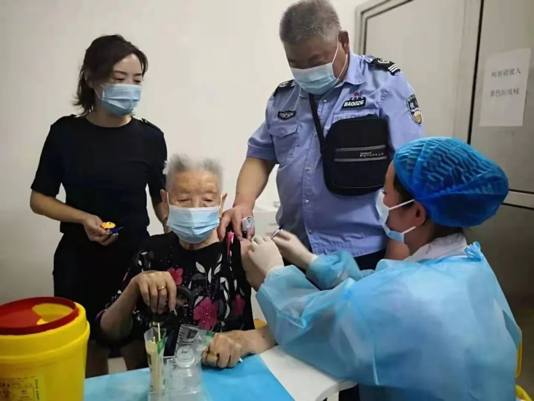 8月29日,桂花路社區(qū)考慮到畢麥英老人行動不便,特地安排專車接送,為老人接種新冠疫苗提供服務。在接種新冠疫苗之前,醫(yī)生對畢麥英老人的身體健康狀況進行了綜合檢查和評估,在確認其身體狀況良好,無禁忌癥的情況下,醫(yī)護人員為她接種了第一針劑疫苗。