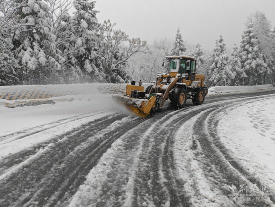 在各重點(diǎn)路段,工作人員迅速設(shè)置提示牌,并及時(shí)砍伐被積雪壓倒的楠竹等樹木。此外,還通過人工鏟雪、機(jī)械撒工業(yè)鹽等措施,爭(zhēng)取在最短的時(shí)間內(nèi)搶通受冰雪影響的道路。