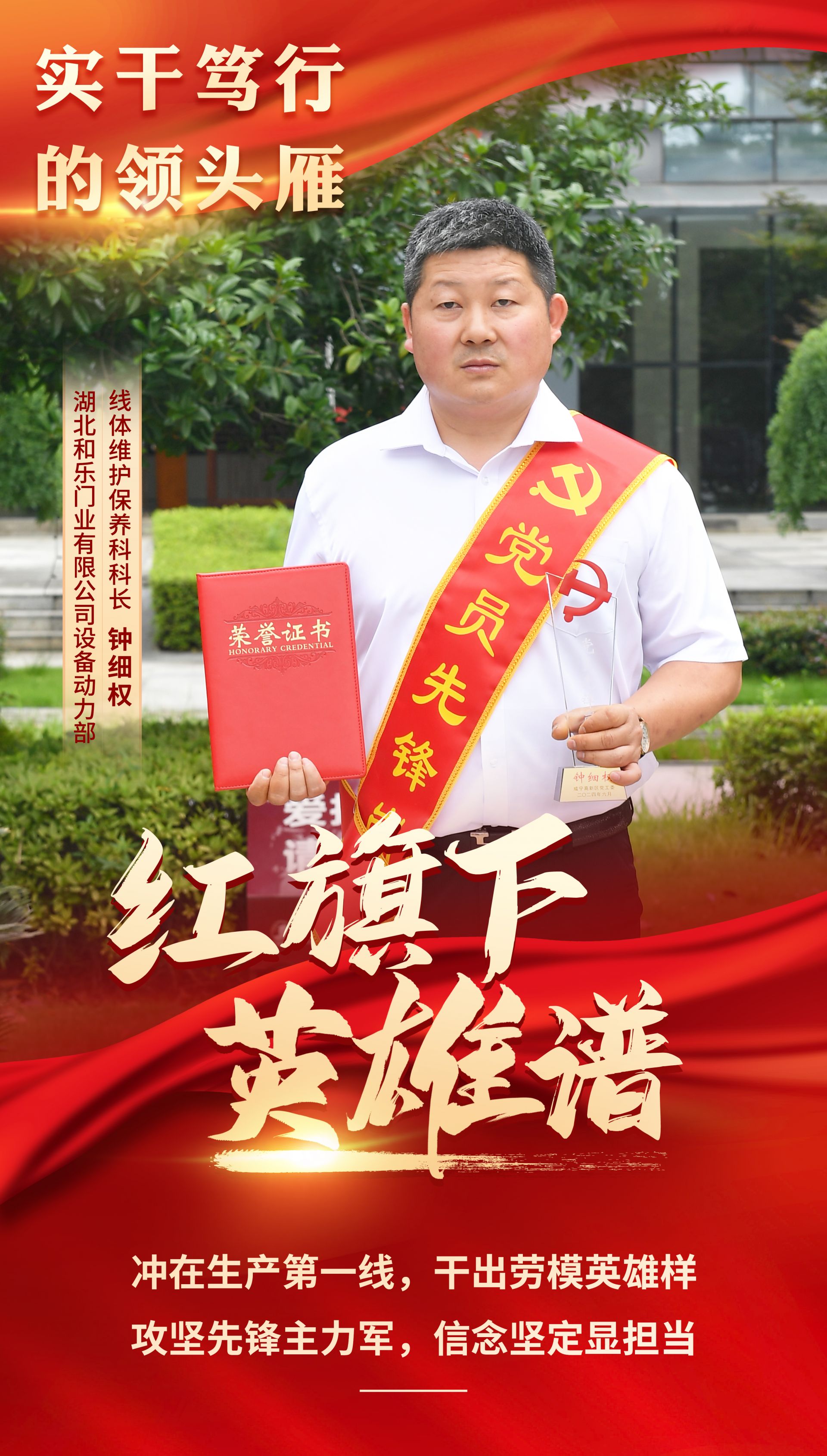 為進(jìn)一步發(fā)揮黨支部戰(zhàn)斗堡壘和黨員先鋒模范作用,咸寧高新區(qū)黨工委研究決定,授予鐘細(xì)權(quán)等10名同志“黨員先鋒崗”榮譽(yù)稱號(hào)。