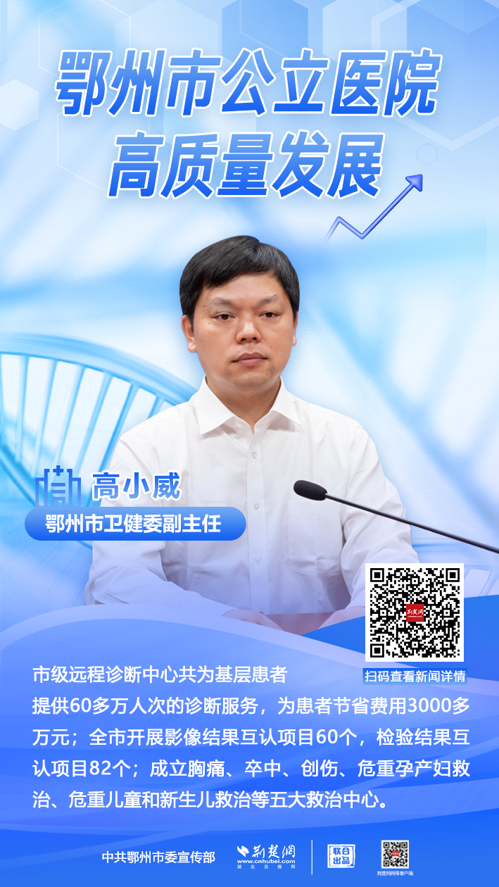 荊楚網(wǎng)(湖北日?qǐng)?bào)網(wǎng))訊(記者 王焱堯 姜夢(mèng)瑤)8月8日,鄂州市舉辦公立醫(yī)院高質(zhì)量發(fā)展新聞發(fā)布會(huì),通報(bào)近年來(lái)該市在“推進(jìn)衛(wèi)生健康事業(yè)高質(zhì)量發(fā)展”中,公立醫(yī)院發(fā)展取得的系列成績(jī)。