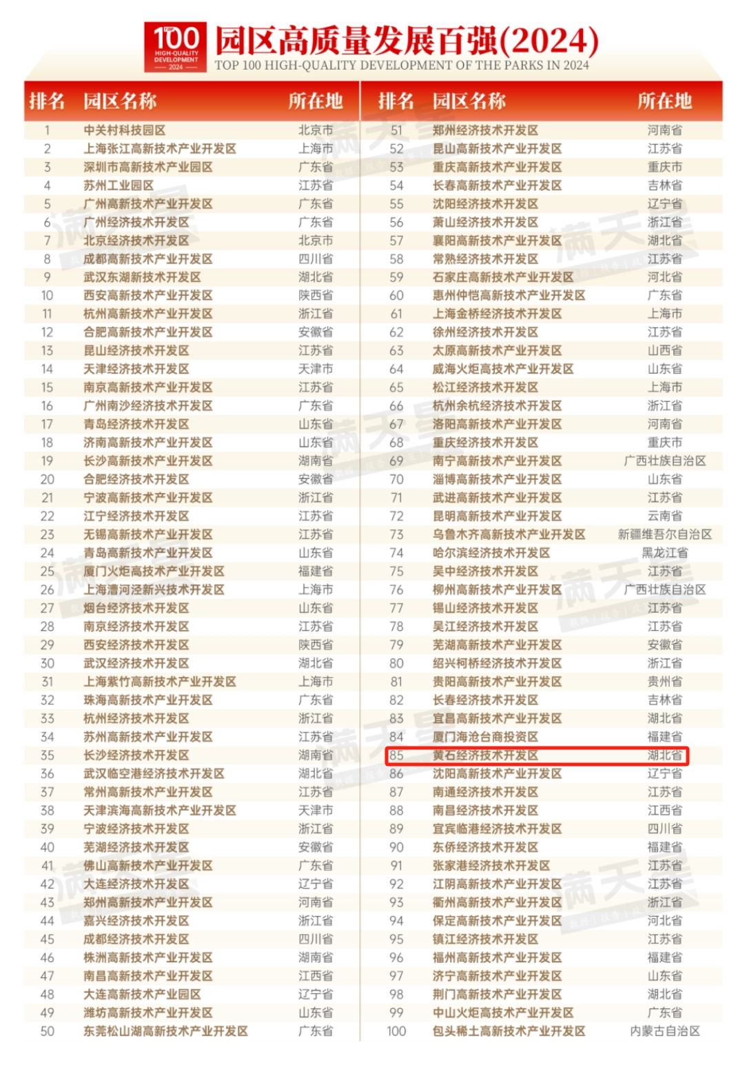 荊楚網(湖北日報網)訊(記者呂鑒蕾 通訊員董浩)8月14日,賽迪顧問發(fā)布《2024年中國園區(qū)經濟高質量發(fā)展研究報告》。黃石經濟技術開發(fā)區(qū)在賽迪百強園區(qū)中位列85位,較上一年上升7位。