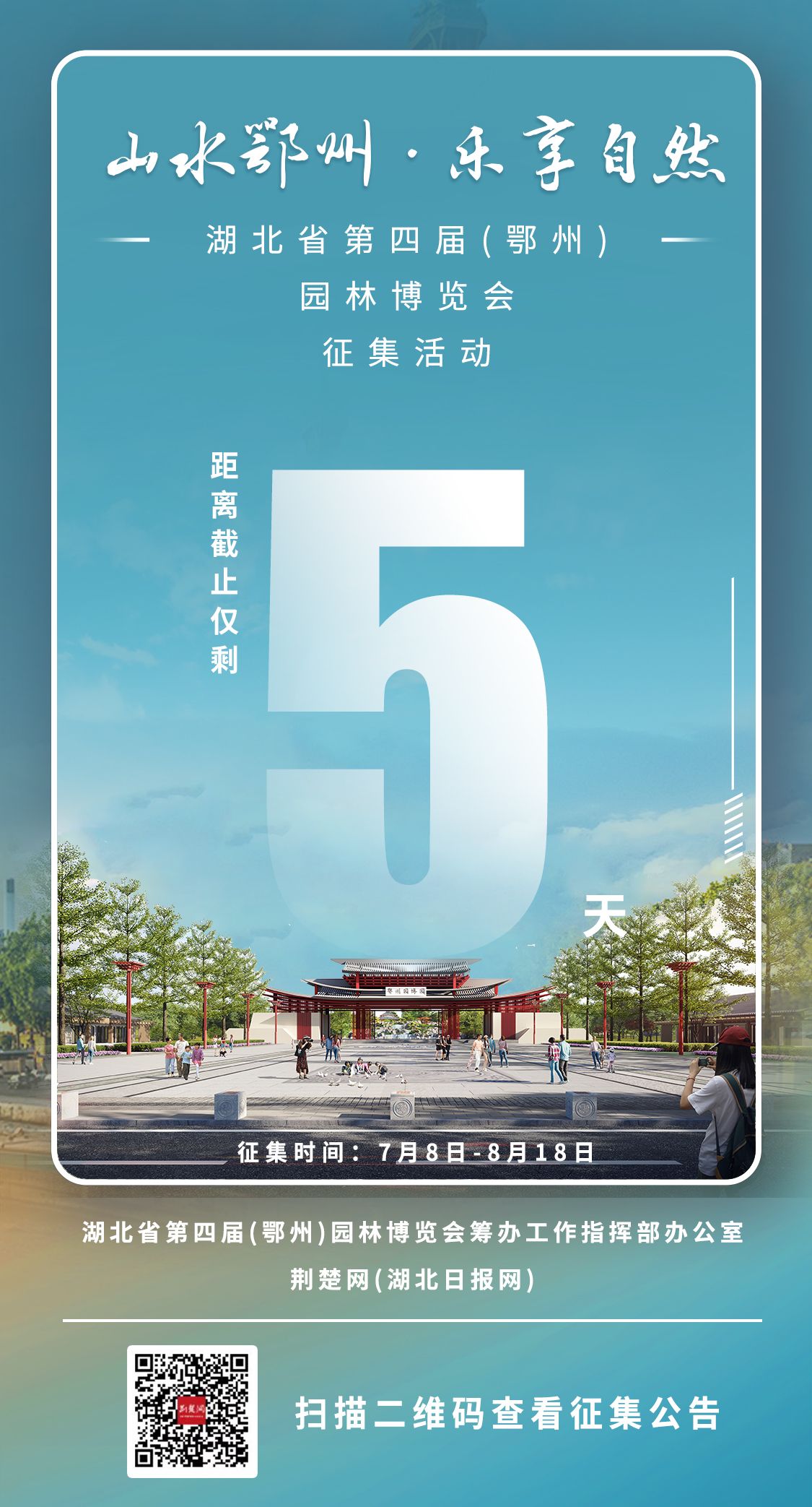 荊楚網(wǎng)(湖北日?qǐng)?bào)網(wǎng))訊(記者陶輝 金康 通訊員 秦才勝)山水鄂州,樂(lè)享自然。8月14日,記者從湖北省第四屆(鄂州)園林博覽會(huì)(以下簡(jiǎn)稱(chēng)“鄂州園博會(huì)”)籌辦工作指揮部辦公室獲悉,會(huì)徽、會(huì)歌、吉祥物及宣傳口號(hào)征集工作將于8月18日截止。