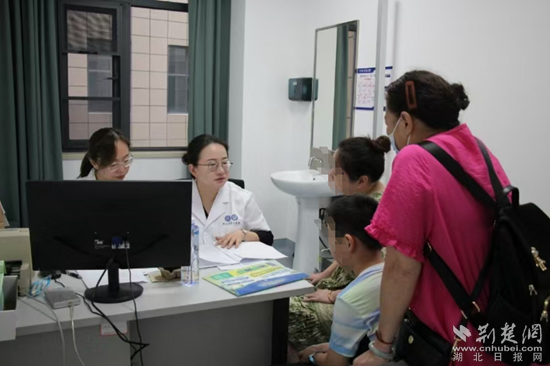在診室坐診的便是武漢協(xié)和醫(yī)院金銀湖院區(qū)兒科負(fù)責(zé)人蔡馥丞副教授和黃石市第二醫(yī)院兒科副主任張芷銘。在診室門前,前來(lái)就診人員排起長(zhǎng)隊(duì),許多家長(zhǎng)眉頭緊皺,臉上寫著同一個(gè)疑問(wèn):我的孩子怎么了?