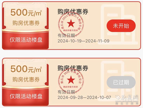 其中,“一口價”專欄集中展示特價房源;“大優(yōu)惠”專欄集中展示特價房外的其它優(yōu)惠房源。購房人在活動詳情頁點擊“立即領券”,填寫姓名、身份證號、戶籍所在地、工作單位、手機號、意向樓盤等信息,填寫完成后可領取一張“購房優(yōu)惠券”。優(yōu)惠券面值為500元/平方米,有效期為2024年10月19日至11月9日。