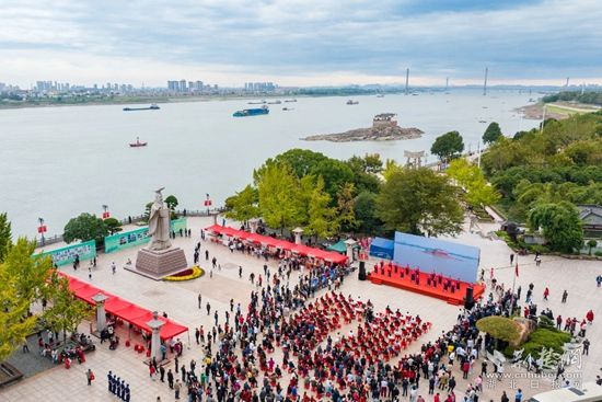 鑼鼓表演《中國(guó)范兒》、朗誦串燒《萬(wàn)里長(zhǎng)江第一閣》、楚風(fēng)楚韻《編鐘樂(lè)舞》……當(dāng)天上午,熱鬧非凡的孫權(quán)廣場(chǎng)與江中靜靜矗立著的觀音閣遙遙相望,眾多文藝節(jié)目輪番上演,為現(xiàn)場(chǎng)群眾提供了一場(chǎng)古風(fēng)古韻的視聽(tīng)盛宴。