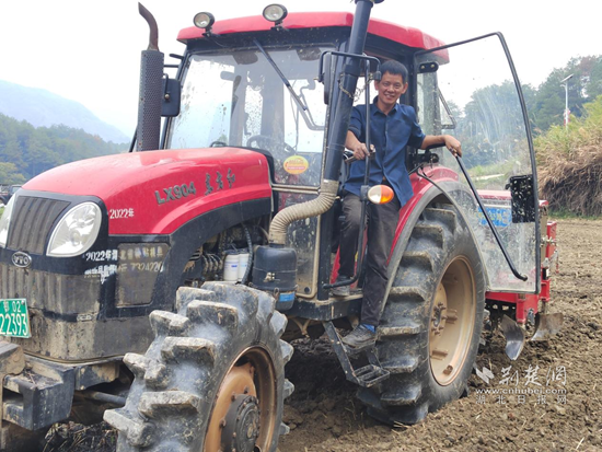 老闞平整土地,準(zhǔn)備輪種油菜。 通訊員 供圖