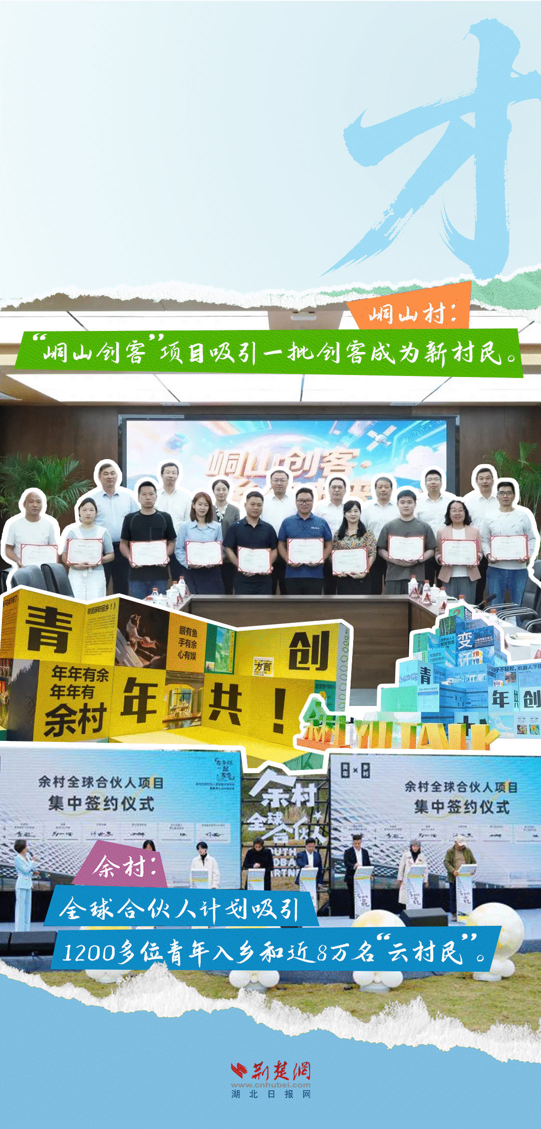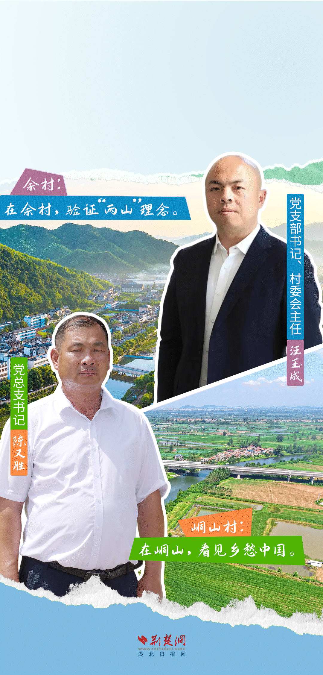 今天,荊楚網(wǎng)(湖北日報網(wǎng))推出創(chuàng)意海報《留得住綠水青山,記得住美麗鄉(xiāng)愁——湖北峒山村與浙江余村的對話》,展示中國鄉(xiāng)村的美麗畫卷。