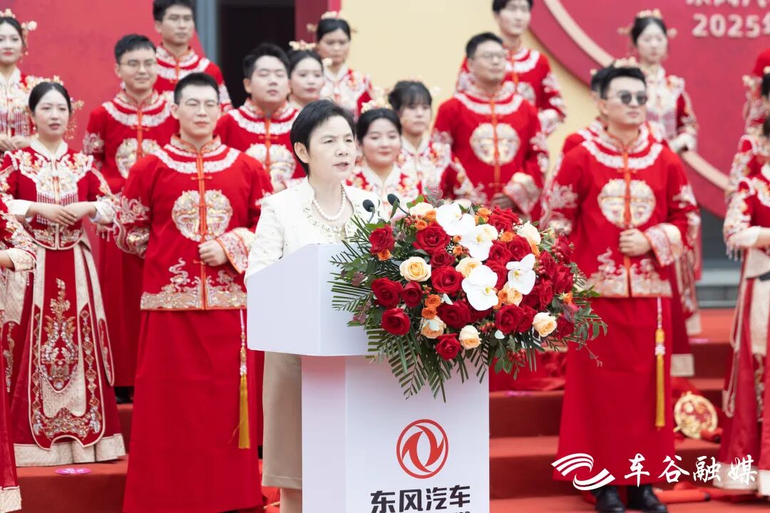 “昔有伯牙子期高山流水遇知音,今有東風(fēng)良侶天作之合締鴛盟?!弊C婚人劉治田在致辭中表示,東風(fēng)汽車(chē)是湖北高質(zhì)量發(fā)展的頂梁柱、產(chǎn)業(yè)升級(jí)的領(lǐng)頭羊、科技創(chuàng)新的主力軍。希望來(lái)自東風(fēng)的新人們能夠以愛(ài)為舟、以家為港,與東風(fēng)同奮進(jìn),與時(shí)代共前行,在汽車(chē)強(qiáng)國(guó)的偉大征程中譜寫(xiě)絢爛的青春詩(shī)篇。