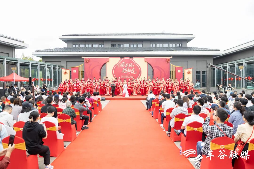 上午9點(diǎn)40分,以嵐圖夢(mèng)想家為頭車(chē),42輛嵐圖知音組成的迎親車(chē)隊(duì)緩緩駛?cè)霚幕瘜m。9點(diǎn)58分,新人們手牽紅繡球,共同跨越“幸福之門(mén)”,集體婚禮正式拉開(kāi)帷幕。儀式上,新人們整裝正冠,行對(duì)拜禮、執(zhí)手禮,新人代表領(lǐng)誦婚書(shū)、展示才藝,溫馨而熱烈的氛圍感染了在場(chǎng)的每一位嘉賓。