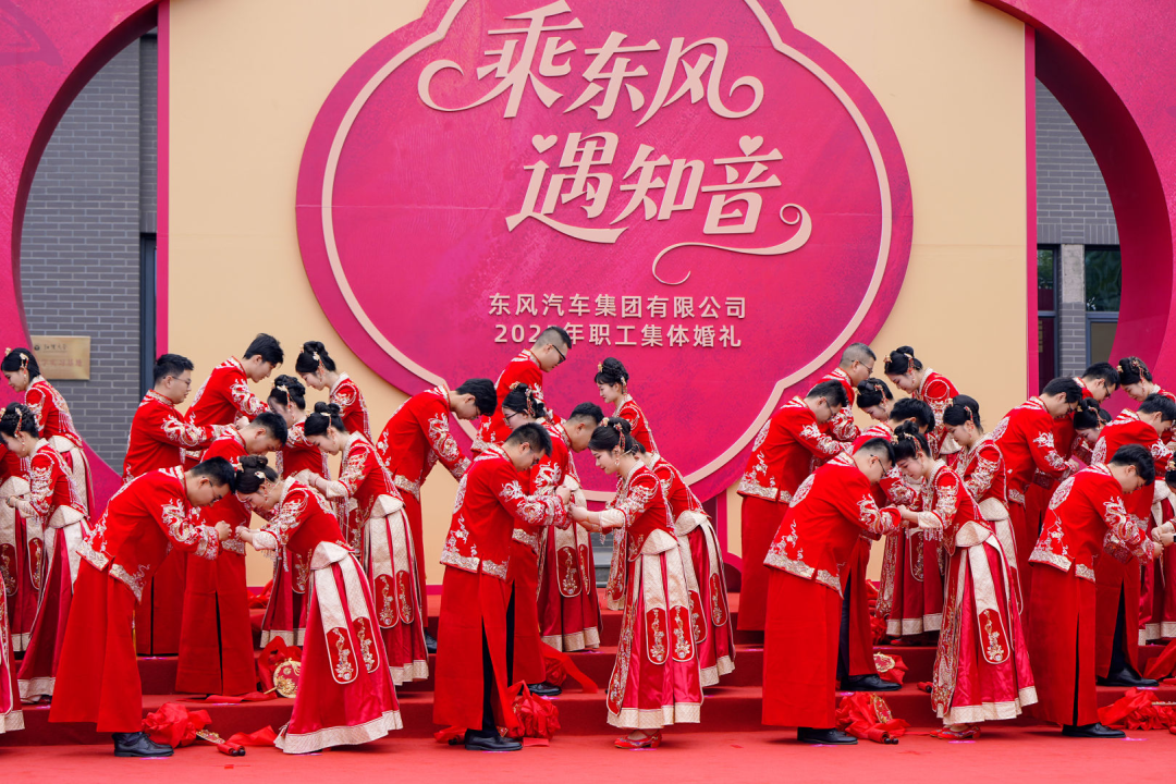 9月20日,東風(fēng)汽車(chē)2025年職工集體婚禮在武漢經(jīng)開(kāi)區(qū)湯湖文化宮舉行。40對(duì)新人在親友和嘉賓的見(jiàn)證下,攜手穿越“幸福之門(mén)”,共同步入婚姻的殿堂,開(kāi)啟人生新篇章。