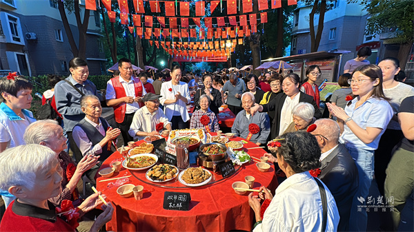 鄰里關(guān)系的升溫,離不開(kāi)有溫度的聯(lián)結(jié)。如今城市里的單元樓,常隔著“一扇門(mén)的距離”,而社區(qū)的百家宴,恰好打破了這份疏離。紅燒排骨、手工餃子、梅菜扣肉,百余道家常菜擺成長(zhǎng)桌,陌生鄰里因一道菜打開(kāi)話匣子,老街坊借一碗湯嘮起家常;10位高齡老人與祖國(guó)同慶生,全場(chǎng)齊唱的《生日歌》里,藏著對(duì)長(zhǎng)輩的敬重,也裹著“社區(qū)是家”的歸屬感。比起刻意的破冰活動(dòng),這樣帶著煙火氣的相聚,更能讓鄰里情在自然中流淌。