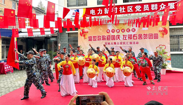 荊楚網(wǎng)(湖北日報網(wǎng))訊(通訊員 張芳蕾)國慶將至,金秋同來,為豐富居民文化生活,促進鄰里和諧,9月28日上午,武昌區(qū)楊園街道電力新村社區(qū)在幸福廣場舉行“盛世歡歌迎國慶,左鄰右舍賀團圓”百姓大舞臺文藝匯演活動。共建單位、“兩新”組織及熱心居民等200余人歡聚一堂,在飄揚的紅旗下共賞精彩節(jié)目,共話家國團圓。