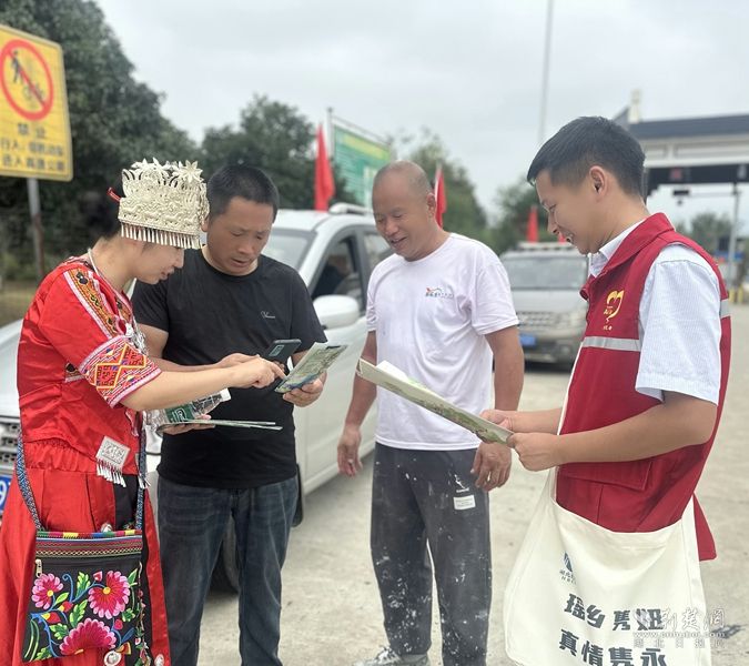 作為“瑤族發(fā)源地”的省界窗口,這里的服務滿是瑤鄉(xiāng)風情?!艾庎l(xiāng)雋妞”們身著紅馬甲,遇本地老鄉(xiāng)用方言嘮家常,提醒“前面路口減速”。碰上外地游客,就用普通話介紹美景美食。電子指引里還加了特產介紹,不少司乘被吸引,專程去逛古瑤村、買特產。志愿服務從“幫個忙”變成了推介瑤鄉(xiāng)文化的“活名片”。