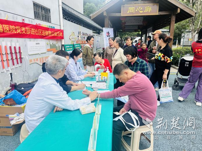 在另一角落,醫(yī)護人員耐心講解健康知識,社保卡辦理區(qū)的漢口銀行工作人員忙個不停,為居民免費辦理社??ㄉ墭I(yè)務(wù)。
