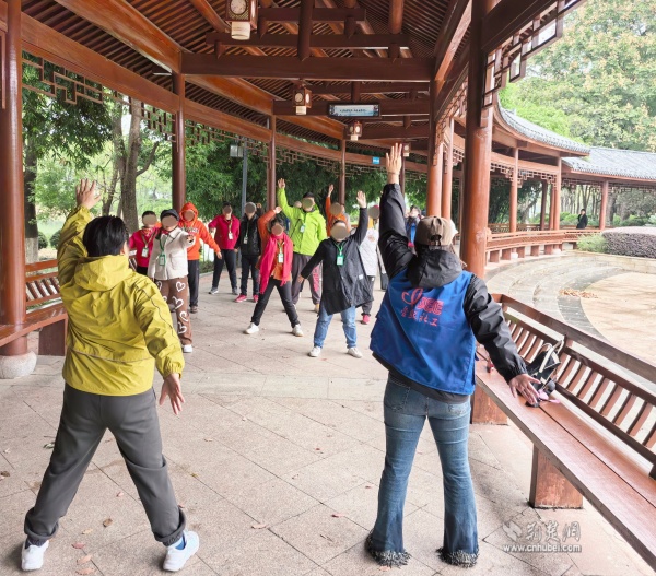 抵達(dá)公園后,全體人員在指導(dǎo)下進(jìn)行熱身操活動(dòng)。簡(jiǎn)單的互動(dòng)游戲不僅驅(qū)散了清晨的涼意,也進(jìn)一步調(diào)動(dòng)了參與者的積極性,為后續(xù)游覽營(yíng)造了輕松愉快的氛圍。