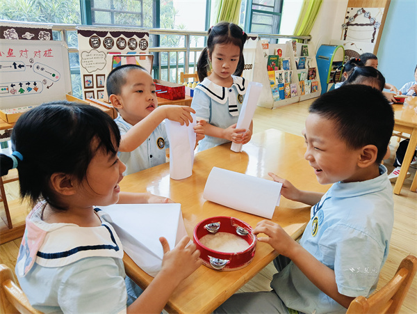 活動(dòng)采用沉浸式體驗(yàn)、高互動(dòng)參與形式?!氨”∫粡埣?,卷成圓筒后為啥能扛住比自己重好幾倍的東西?”幼兒園老師先播放趣味動(dòng)畫片勾起孩子好奇心,再拿起卷紙芯、快遞紙筒等生活常見物品,用淺顯的“兒童語言”拆解圓柱結(jié)構(gòu)的秘密,把抽象的力學(xué)原理講得直觀易懂,幫孩子們建立對(duì)科學(xué)的初步認(rèn)知。