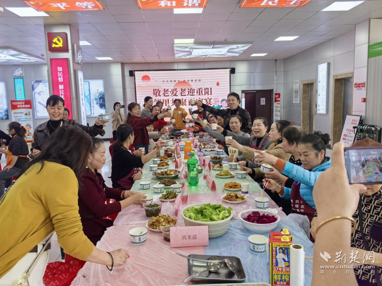 當(dāng)天上午,蒲潭社區(qū)老年學(xué)校與居家養(yǎng)老服務(wù)中心以“敬老愛老迎重陽,鄰里共聚百家宴”為主題,舉辦了一場熱鬧的重陽百家宴活動(dòng)。為廣大老年居民送上第一份“暖心禮”。社區(qū)居民歡聚一堂,煮餃子、炸雞冠餃,品佳肴、唱?dú)g歌,共慶佳節(jié)。