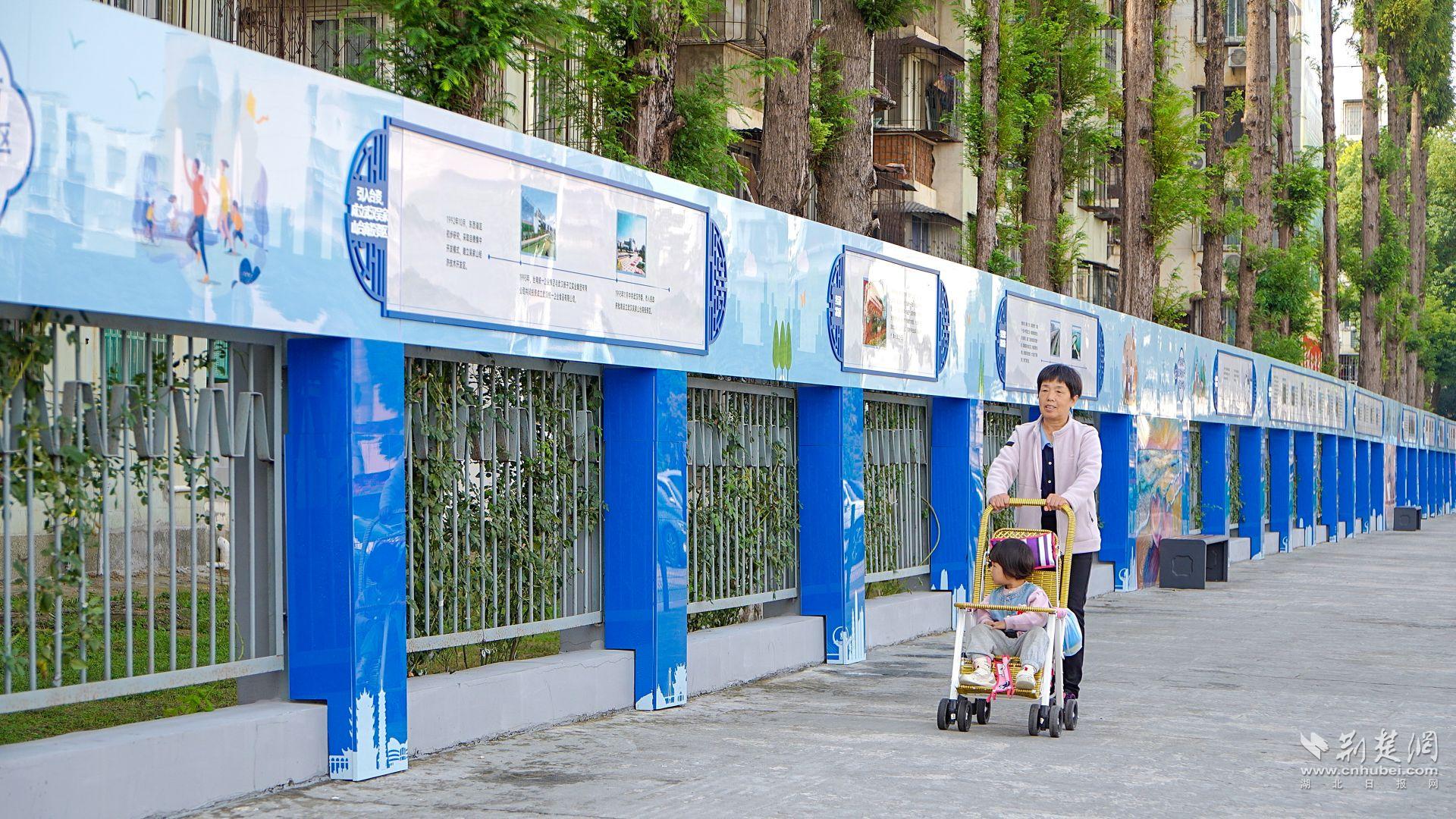 圍墻和彩繪也成了亮點(diǎn)。專業(yè)團(tuán)隊(duì)在相鄰居民樓外墻繪制325平方米主題壁畫——一面呈現(xiàn)“魅力東西湖”的城市風(fēng)貌,一面展現(xiàn)“幸福新常青”的生活圖景,成為社區(qū)新地標(biāo)。
