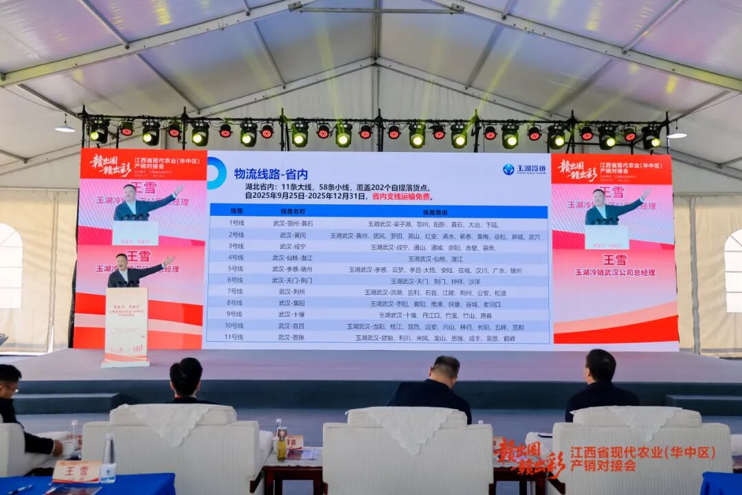 近日,江西省優(yōu)質(zhì)農(nóng)產(chǎn)品(華中區(qū))產(chǎn)銷(xiāo)對(duì)接會(huì)在位于黃陂區(qū)的玉湖冷鏈(武漢)交易中心舉辦。當(dāng)天,隨著玉湖冷鏈“華中區(qū)江西館”的揭牌,連接南昌主要凍品及農(nóng)產(chǎn)品批發(fā)市場(chǎng)與玉湖冷鏈(武漢)園區(qū)的“贛鄂冷鏈·玉湖專(zhuān)線”正式雙向開(kāi)通,這也標(biāo)志著黃陂區(qū)在華中冷鏈物流中的核心樞紐價(jià)值進(jìn)一步提升。