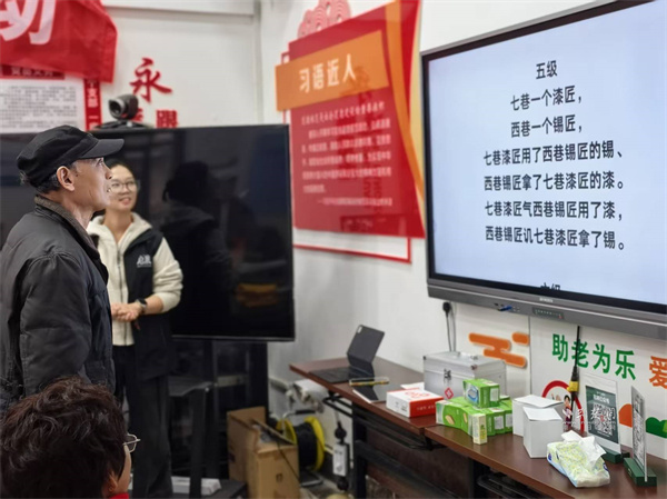 活動以繞口令熱身開場。曾講授量子力學(xué)的老教授們,此刻神情專注地逐字讀著"炮兵怕把標(biāo)兵碰",略顯生澀卻認(rèn)真的模樣,引得現(xiàn)場歡笑聲與掌聲不斷,氣氛瞬間活躍起來。