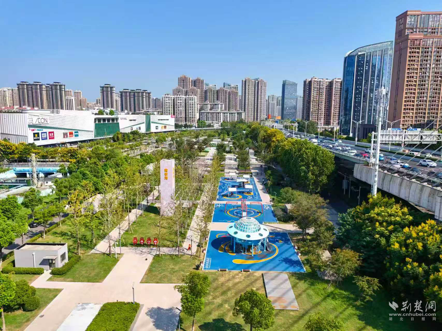 江漢區(qū)常青街的工棚荒地,化身為色彩明快的遠洋鯨奇兒童友好公園,550米藍色跑道串聯(lián)起全齡樂園。