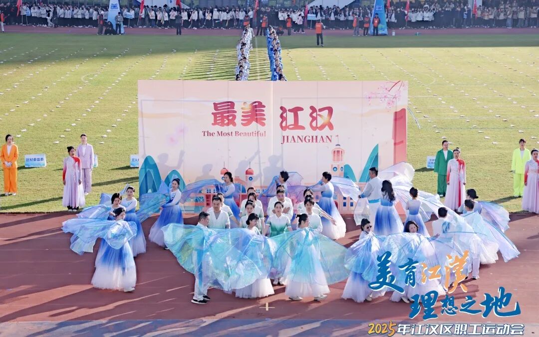 文藝演出環(huán)節(jié)同樣精彩紛呈。開場(chǎng)舞《美麗中國》以熱情舞步禮贊祖國;體育舞蹈《躍動(dòng)未來》上演力量與美的碰撞;《活力江漢》歌曲串燒中,小歌手彭彥凱與武漢天使童聲合唱團(tuán)帶來動(dòng)人演唱,職工歌手聯(lián)袂獻(xiàn)唱《江漢四季》《相親相愛》,引發(fā)全場(chǎng)共鳴;千人工間操展演氣勢(shì)恢宏,全場(chǎng)配合呈現(xiàn)“I?JH”巨型畫面,將開幕式推向高潮。