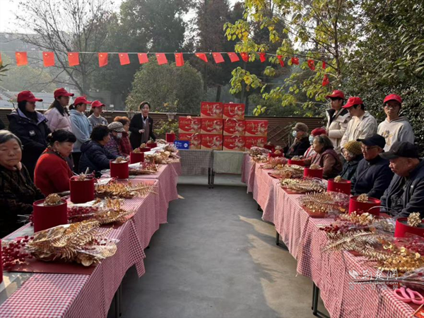 為鍛煉老人動(dòng)手能力與思維敏捷度,活動(dòng)設(shè)趣味手工環(huán)節(jié)。老人們在社區(qū)工作人員與武大學(xué)生志愿者指導(dǎo)下,將干花、仿真花細(xì)心插進(jìn)裝飾桶?,F(xiàn)場笑聲不斷,老人們舉著作品展示、合影,既收獲成就感,又拉近鄰里距離,傳遞社區(qū)溫情。