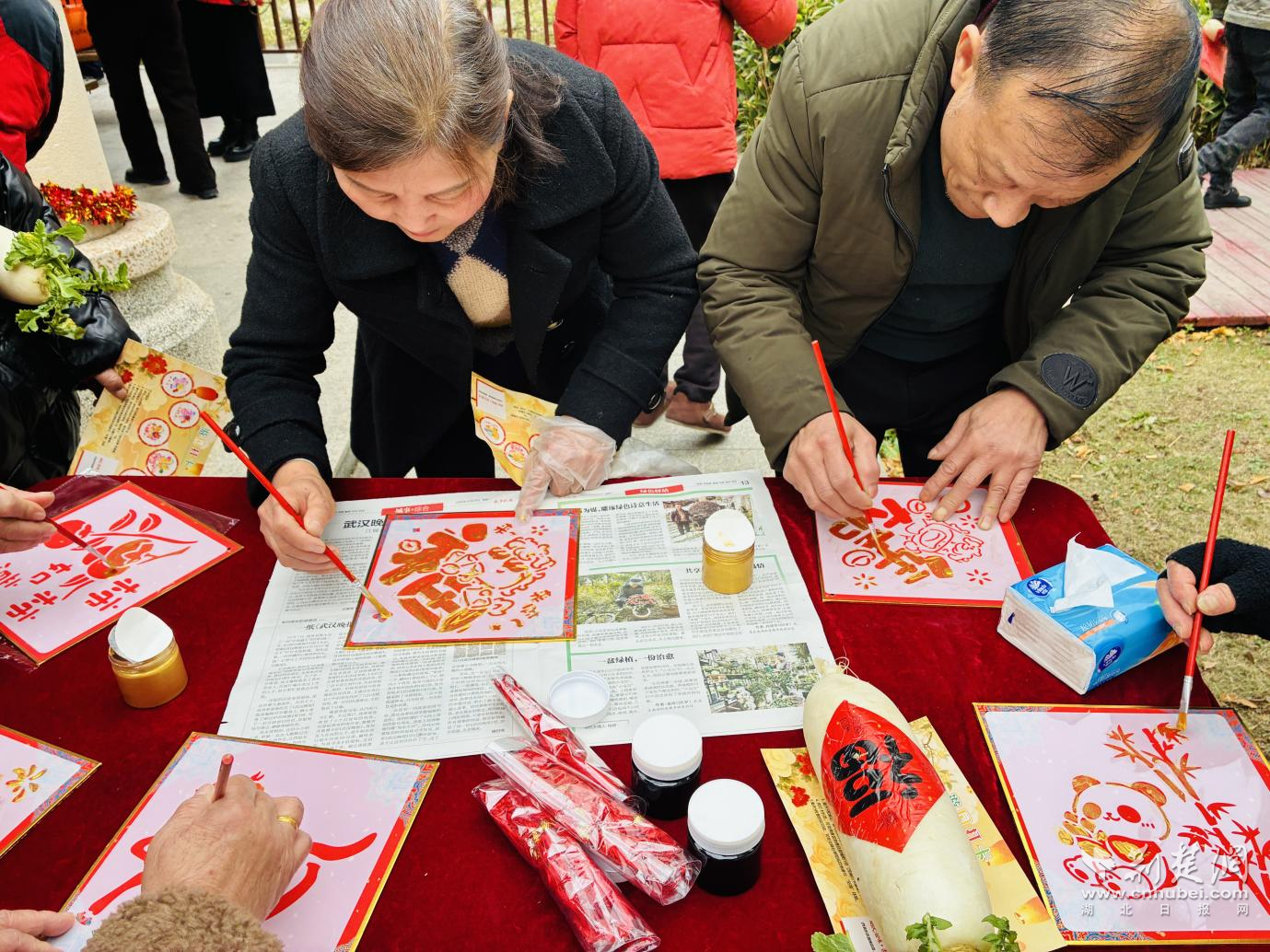 手工體驗(yàn)區(qū)則充滿了濃厚的文化韻味,大家在志愿者的指導(dǎo)下,將雕刻著不同書體“?!弊峙c馬年吉祥紋樣的模板,小心翼翼拓印在紅色宣紙上。當(dāng)一幅幅帶著墨香的福字躍然紙上,不僅定格了傳統(tǒng)技藝的獨(dú)特魅力,更承載著大家對新年福氣盈門的美好期盼。“我拓了一個‘福’字,打算帶回家貼在門上,希望新的一年全家都福氣滿滿!”一位年輕媽媽舉著自己的作品,開心地分享道。