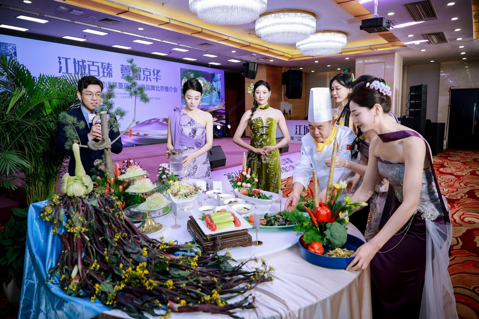 活動(dòng)現(xiàn)場(chǎng),《千年一“薹”,京誠(chéng)所愛》情景劇生動(dòng)詮釋洪山菜薹的傳承與創(chuàng)新,產(chǎn)品走秀與藝術(shù)插花表演凸顯其美學(xué)價(jià)值,楚菜名廚現(xiàn)場(chǎng)演繹“一薹多吃”宴席,展現(xiàn)菜薹融入京鄂風(fēng)味的烹飪創(chuàng)意。京城網(wǎng)紅大廚隋坡登臺(tái)品鑒,為洪山菜薹實(shí)力“打call”。現(xiàn)場(chǎng)同步設(shè)置國(guó)風(fēng)市集,展出鮮薹、鎖鮮產(chǎn)品及禮盒,供嘉賓品鑒體驗(yàn)。