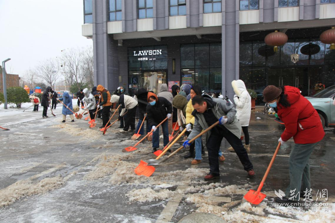在洪山獅子山社區(qū)、東湖高新區(qū)豹澥街道、漢陽區(qū)江堤及四新街道、東湖風(fēng)景區(qū)各村場,物業(yè)、居民志愿者在市民在確保安全的前提下,就近參與掃雪鏟冰、鋪設(shè)草墊,對居民小區(qū)出入口、單元門棟、地下車庫坡道等關(guān)鍵區(qū)域積雪積冰進(jìn)行清理,對轄區(qū)幼兒園、小學(xué)、初中等學(xué)校周邊路段開展融雪除冰,確保居民出行暢通,共同維護(hù)美麗武漢。