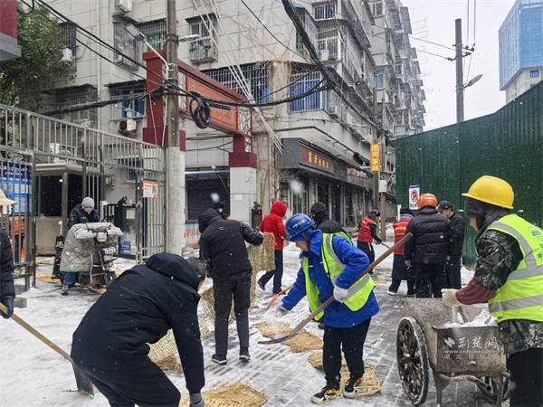 起義門社區(qū)聯(lián)合共建單位中建十八局開(kāi)展集中清雪。 通訊員供圖